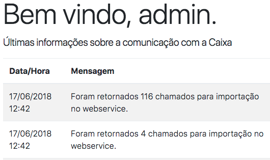 Ao logar no sistema, a página inicial te apresenta as últimas comunicações com o webservice da Caixa Federal. Fique sabendo como está a comunicação com a CEF antes de todos.