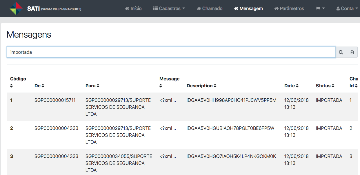 Central de todas as mensagens enviadas e recebidas pelo sistema. Esta funcionalidade é responsável por evidenciar tudo o que foi enviado e recebido nas comunicações com a CEF.